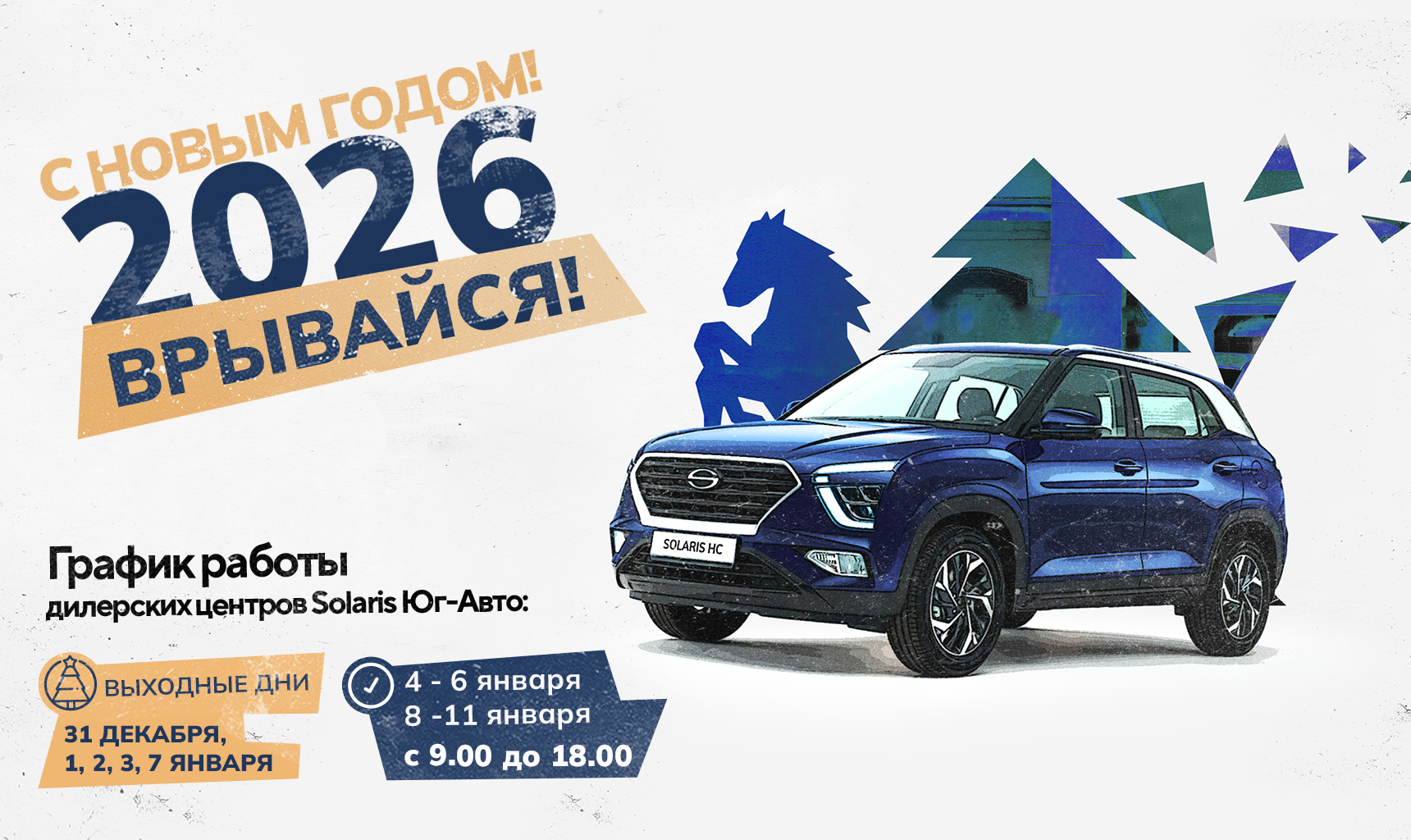 Обратите внимание: в праздничные дни дилерские центры Solaris Юг-Авто будут работать по следующему графику:
